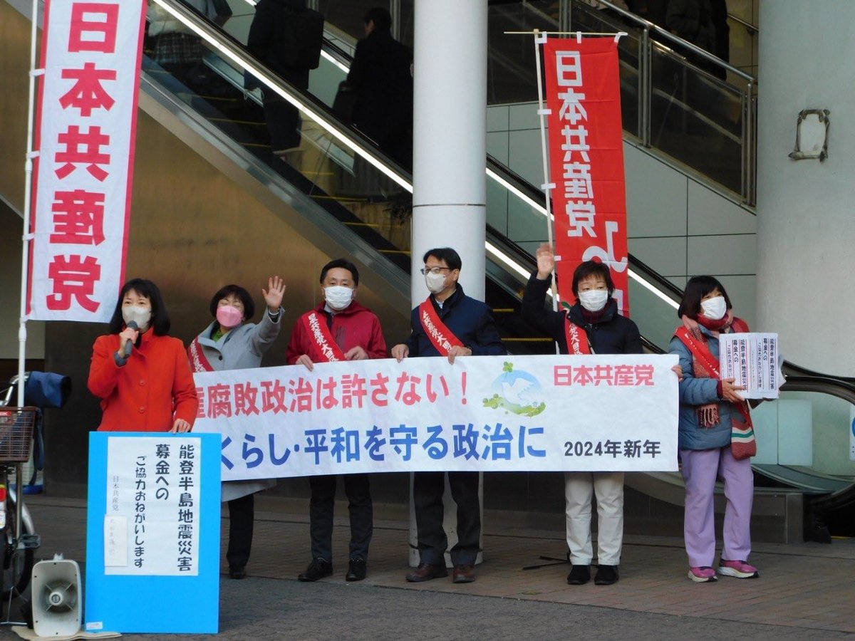 能登半島地震募金もお願いしましたが、多くの方々にご協力いただきました。日本共産党は速やかに地元自治体に、極寒の中 水も食べ物もない避難者に届けます。数人の男子高校生がお金を出し合い代表の子が入れてくれました。