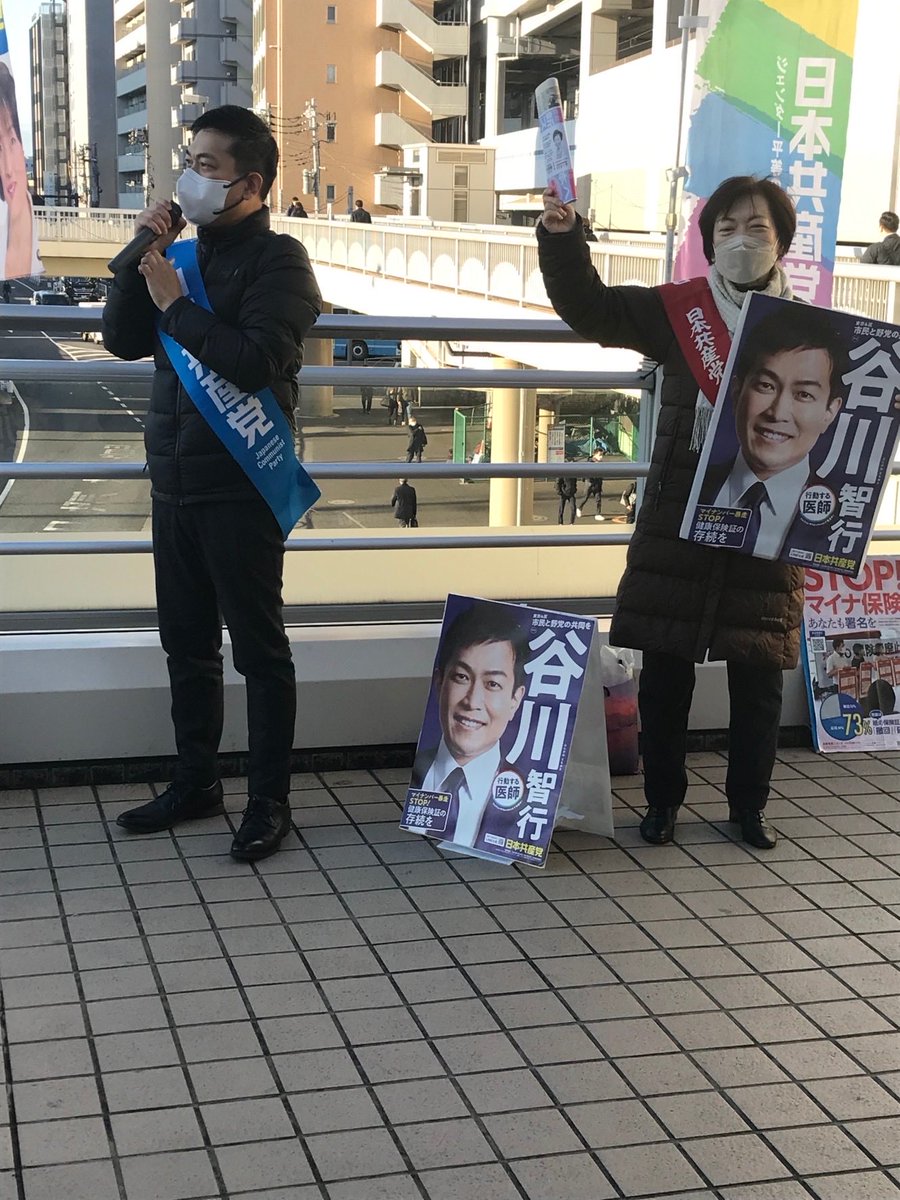 国民の苦難軽減に頑張る日本共産党を体を庇って頑張る谷川智行さんを国会へ!なんとしても!