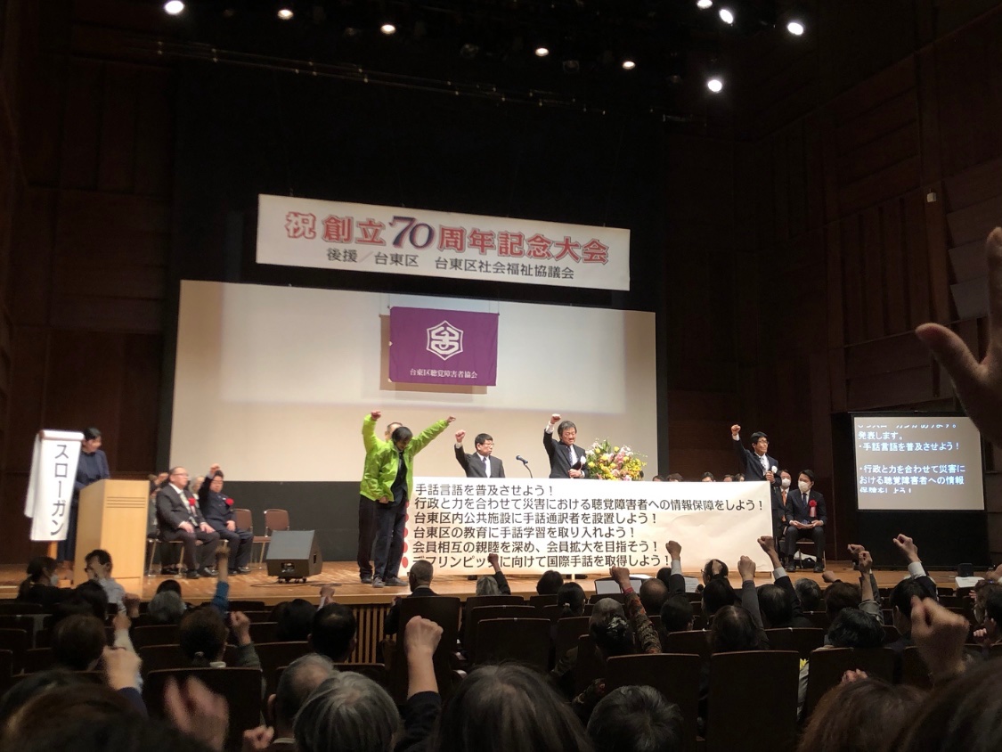 2月18日、台東区聴覚障害者協会の『創立70周年記念大会』へ参加させて頂きました。70年前の協会創立時のことや、「浅草」や「上野」の手話の語源等について教えて頂きました。式典で聞いた場所を巡りながら帰途につきました。創立70周年、誠におめでとうございました。