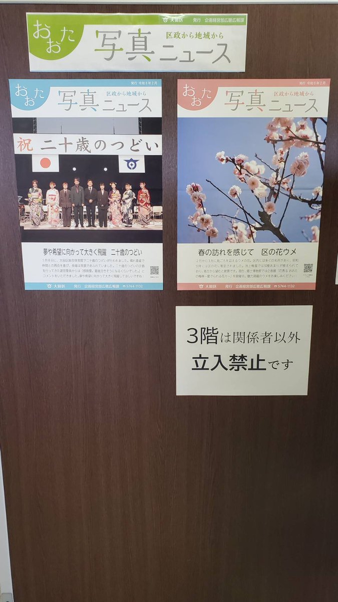 大田区写真ニュース、区内の公共施設に貼られています。月2回発行しており、区民から喜ばれています。