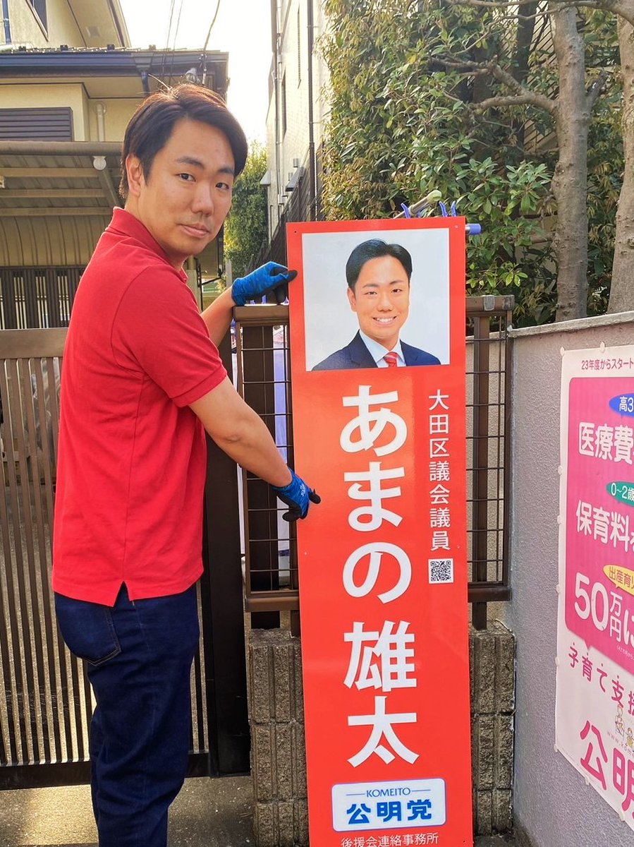 週末に党員の方に設置作業のご協力を頂き、#あまの雄太 の看板設置を行いました🙂