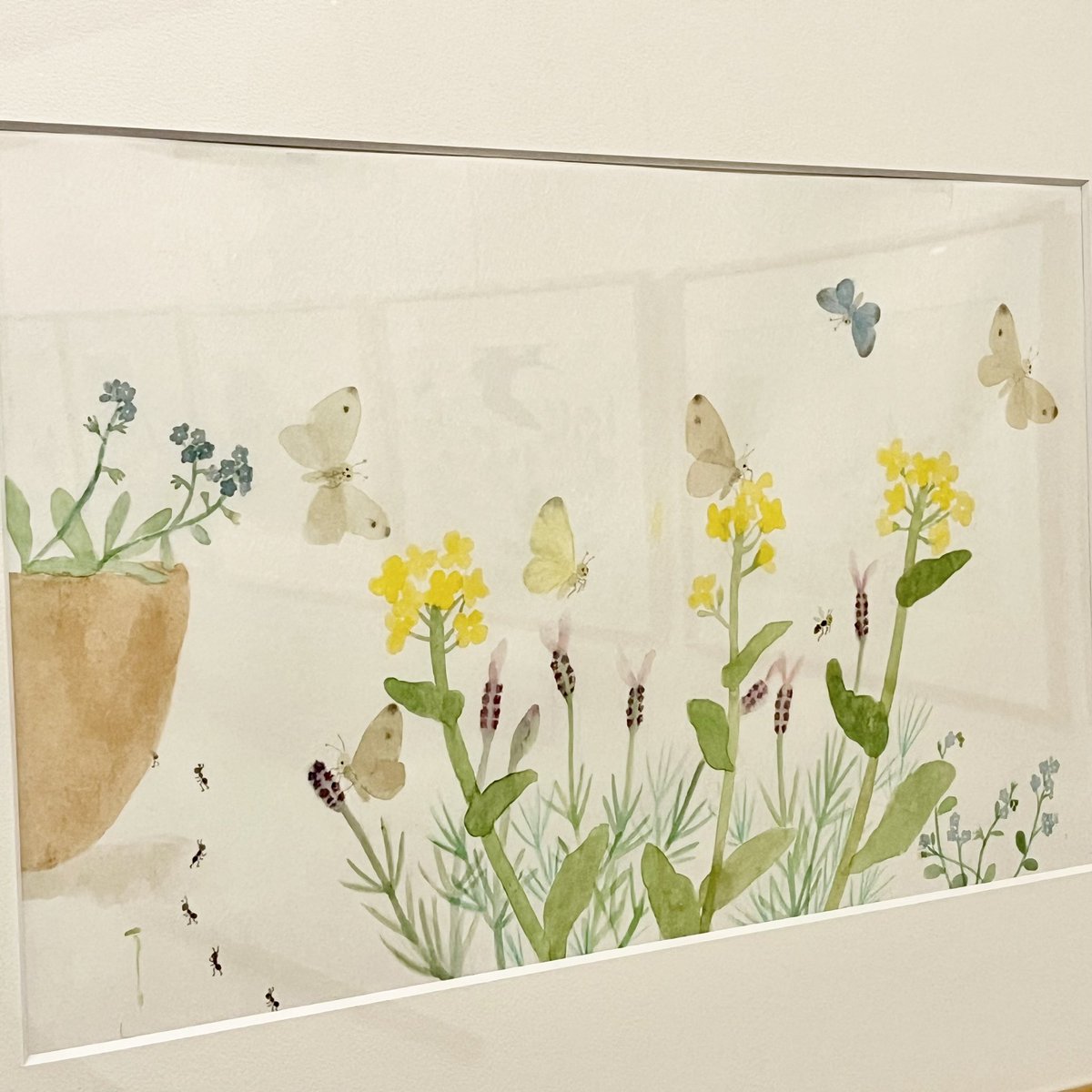 ティールームは、春の陽射しを感じるような暖かさに包まれています。原画を見ていると、土の匂い、花の香り、鳥の囀り、五感を通して春を感じます。何気ない日常の一瞬が輝いて見えます。