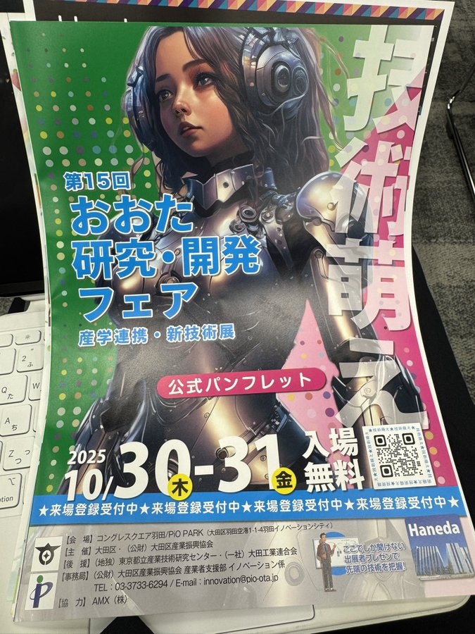 10/31(金)第15回#おおた研究・開発フェアに参加しています。産学連携・新技術が見れます。16:45まで。入場無料。ぜひご参加ください。