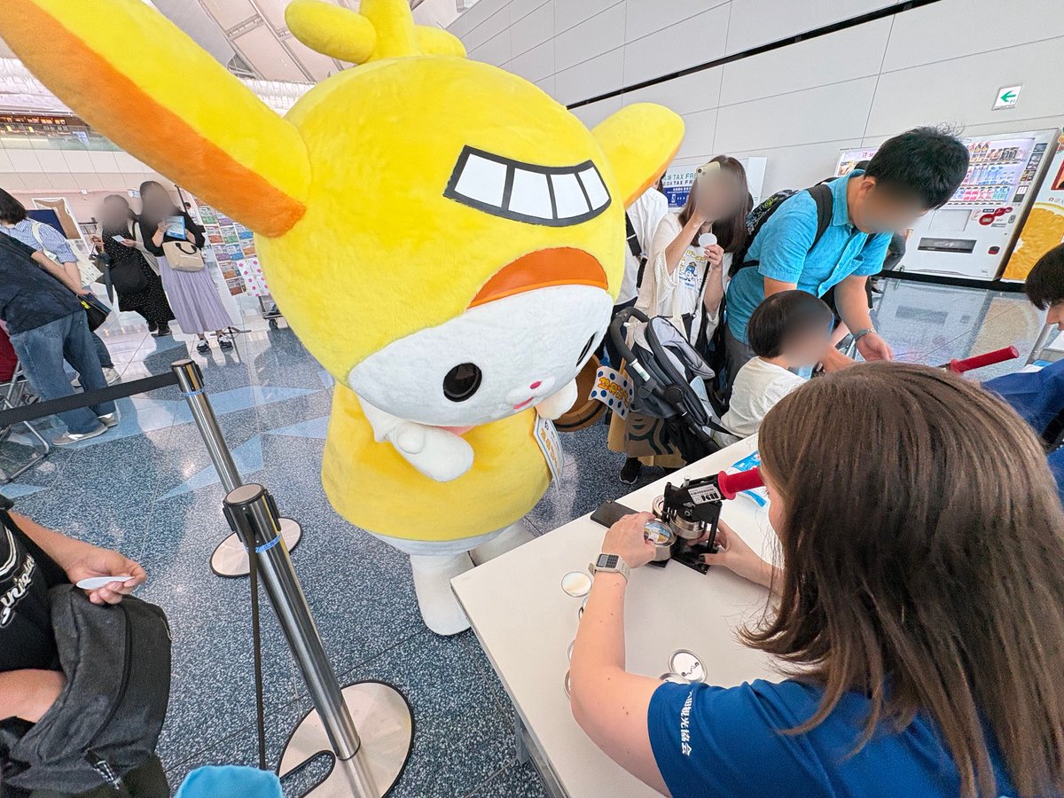 羽田空港第2ターミナル3階で 缶バッジ制作体験 開催中! はねぴょんも挑戦してるよ