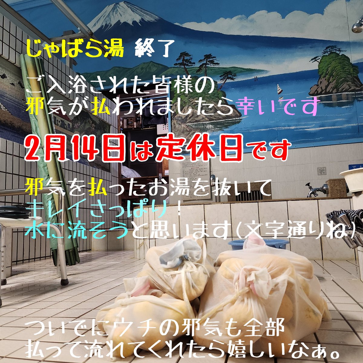 明日は毎月恒例サウナーさん必見サウナデーです!! 炭酸泉がひんやりと水風呂に変わる滅多にない特別な日です😆😆 いつもと変わらず黒湯はあちあちなので整った後は湯冷めしないように身体の芯まで温まってください🌈