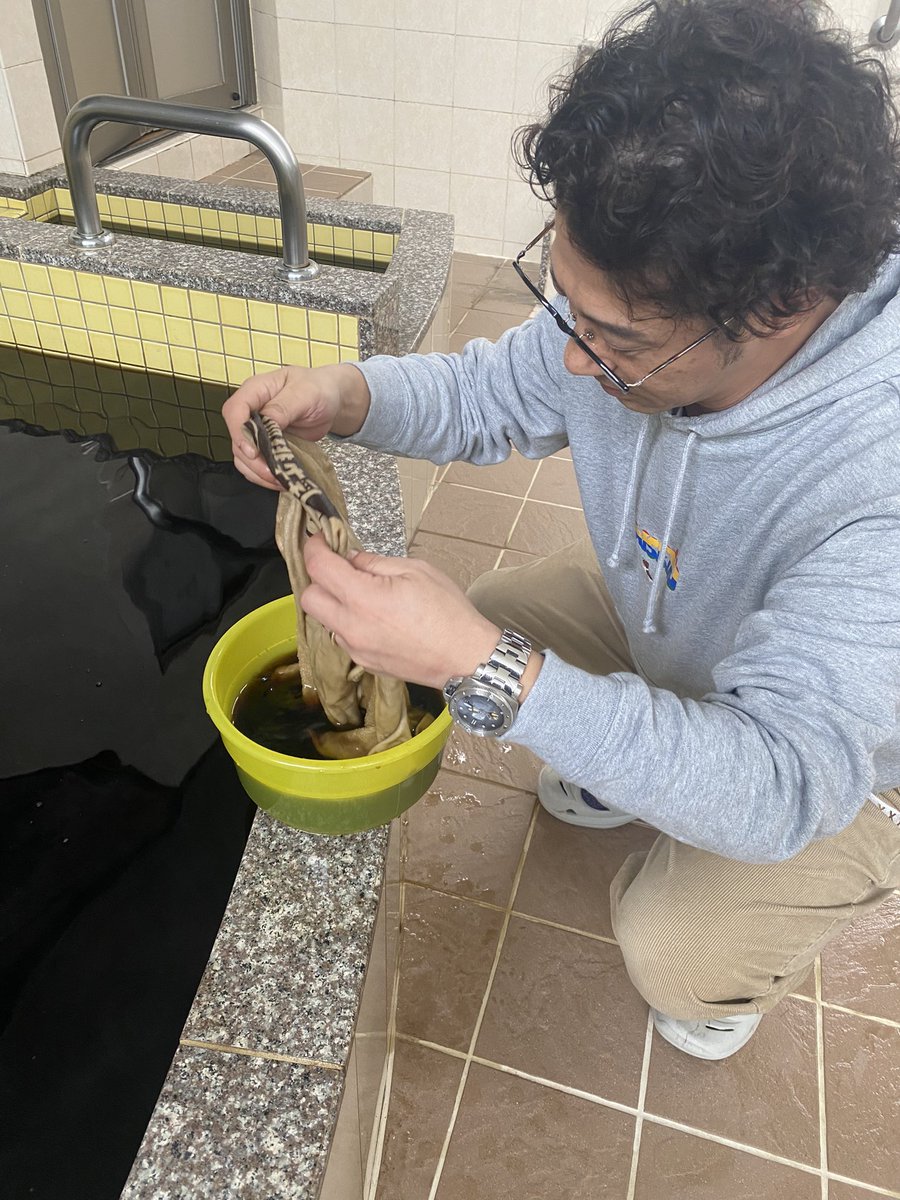 究極染め試行錯誤中の社長です。#改正湯 #銭湯 #sento#黒湯 #黒湯炭酸泉 #元祖黒湯炭酸泉#温泉銭湯 #コーヒー牛乳タオル0341