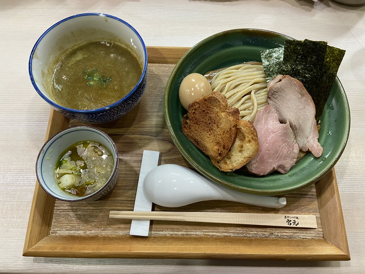 ラーメン探訪『煮干しつけ麺宮元』蒲田限定特製濃厚カキつけ麺牡蠣の独特な風味と鶏豚の甘味、濃厚でありながら実に食べ易く、トピのバケットを浸すと最幸🥱👌👍絶妙な喉越しの太麺がこのスープと良く絡む💯💯💯熱々..