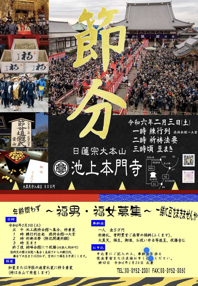 『緊急出演告知』たくさんの方々のご尽力で本日の池上本門寺での節分に出演できることになりました。15時〜舞台上から豆まきいたします。ぜひ池上本門寺に来てね。また一つ夢叶ったよ😭#大田区#池上#池上本門寺..