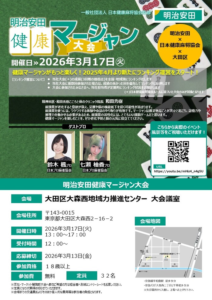 明治安田生命との連携による健康麻雀大会を開催します