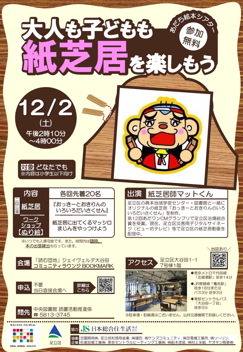 本日午後2時10分から #ジェイヴェルデ大谷田 で開催する、紙芝居とワークショップの演者が変更となりました。