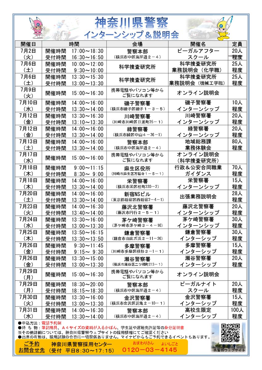 【採用イベント情報】☆神奈川県警察主催☆7月に様々なインターンシップや業務説明会を開催するので是非参加してほしいガル!詳細はURLを確認するリポ♡https://police.pref.kanagaw..