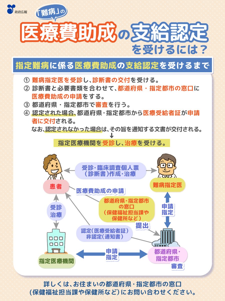 難病の医療費助成を受けるためには、お住まいの都道府県・指定都市の窓口への申請が必要です📄