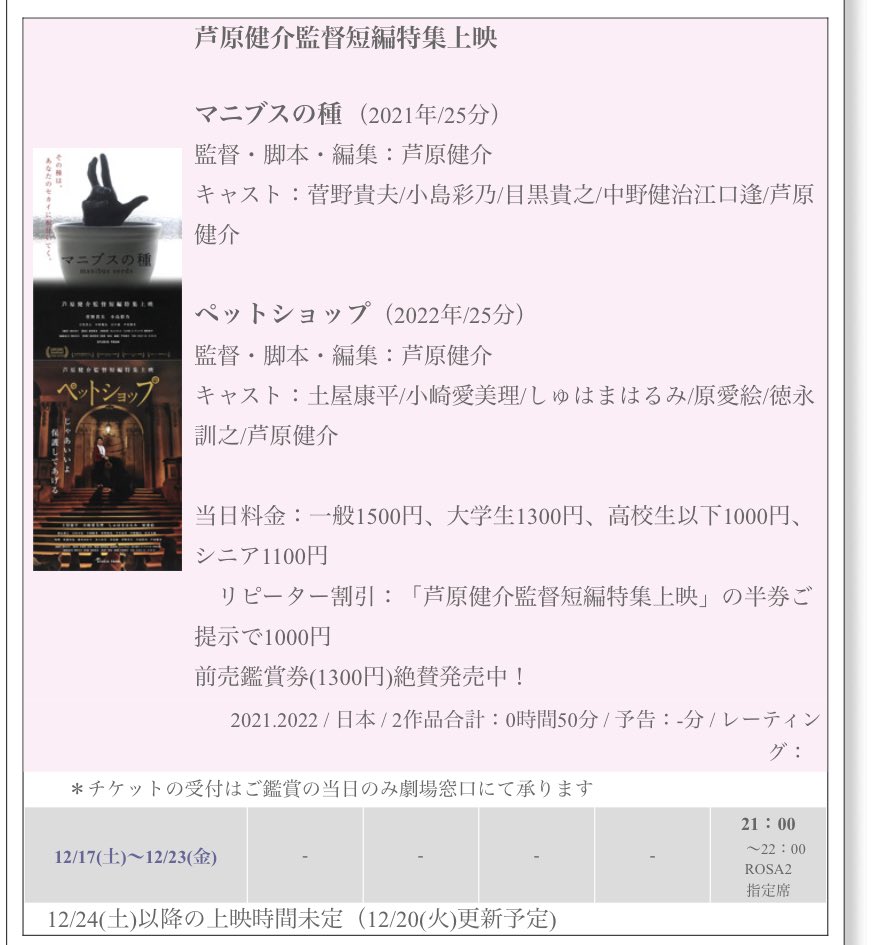 『#芦原健介 監督短編特集上映』