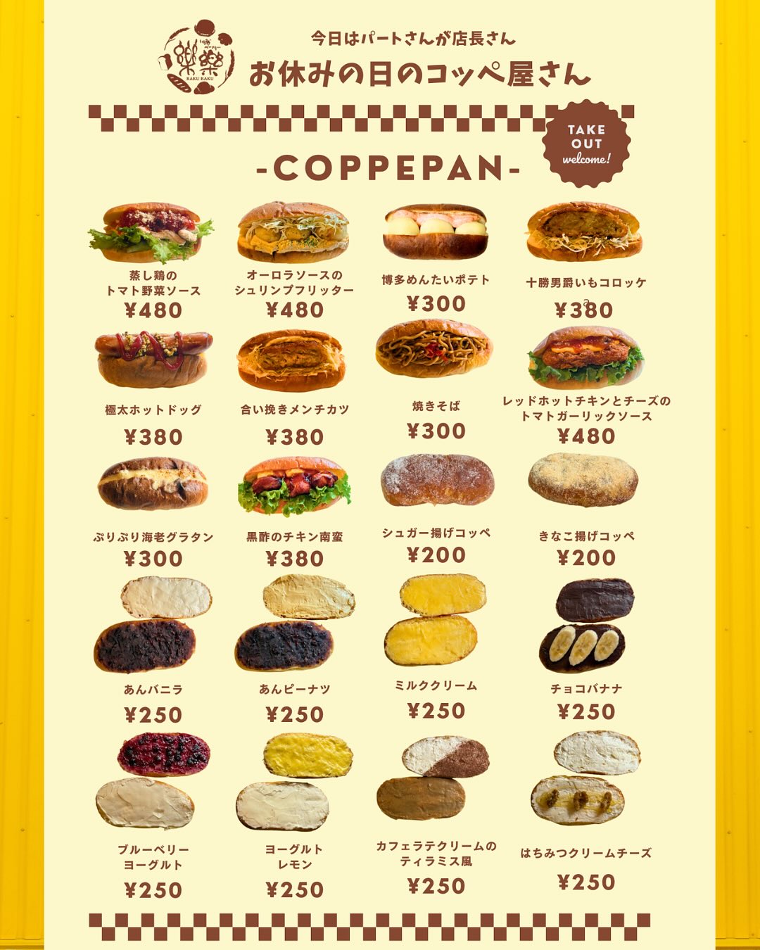 .11/4(火)は『休みの日のコッペ屋さん』の営業日🥖楽楽のコッペは"ふわもち"食感でパンがとっても美味しいの~😋営業時間 10時から14時半ベーカリーがコッペ屋さんになってます😙(通常のパンは売って..