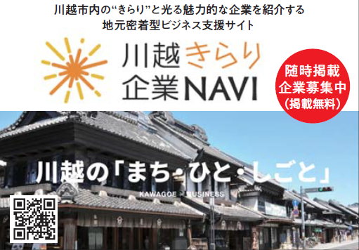 産業振興課です。市内企業を紹介する「川越きらり企業NAVI」新規掲載企業を募集中!掲載は無料です。若者を採用したい、新たなビジネスパートナーを見つけたい企業の応募を待っています。詳しくは下記をご覧くだ..