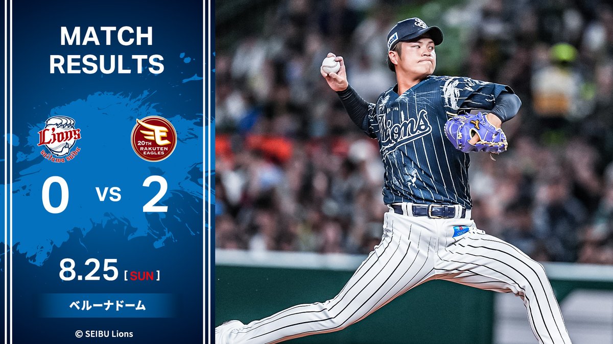 [8/25結果]L0-2E先発の#武内夏暉投手は7回2失点と力投。2番手の#甲斐野央投手、3番手の#上田大河投手も無失点に抑えます。8回には2死ながらも満塁のチャンスをつくりますが、得点することはでき..
