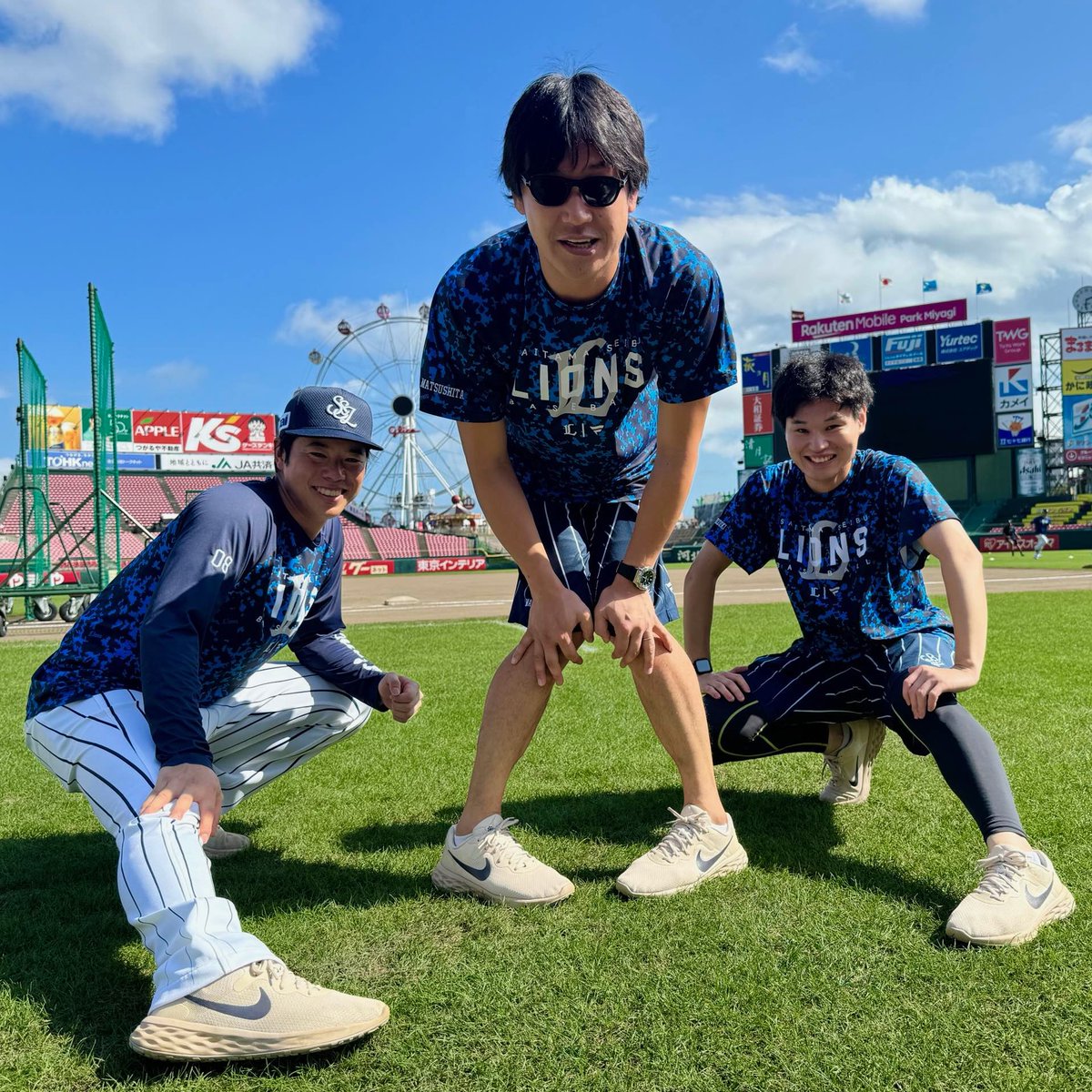 遠征先ではおそろいの靴を履いているマネージャー3人!#松下建太マネージャーが2人にプレゼントしたそうです。似合ってますよね?#埼玉西武ライオンズ#seibulions#ハントブルーユニ