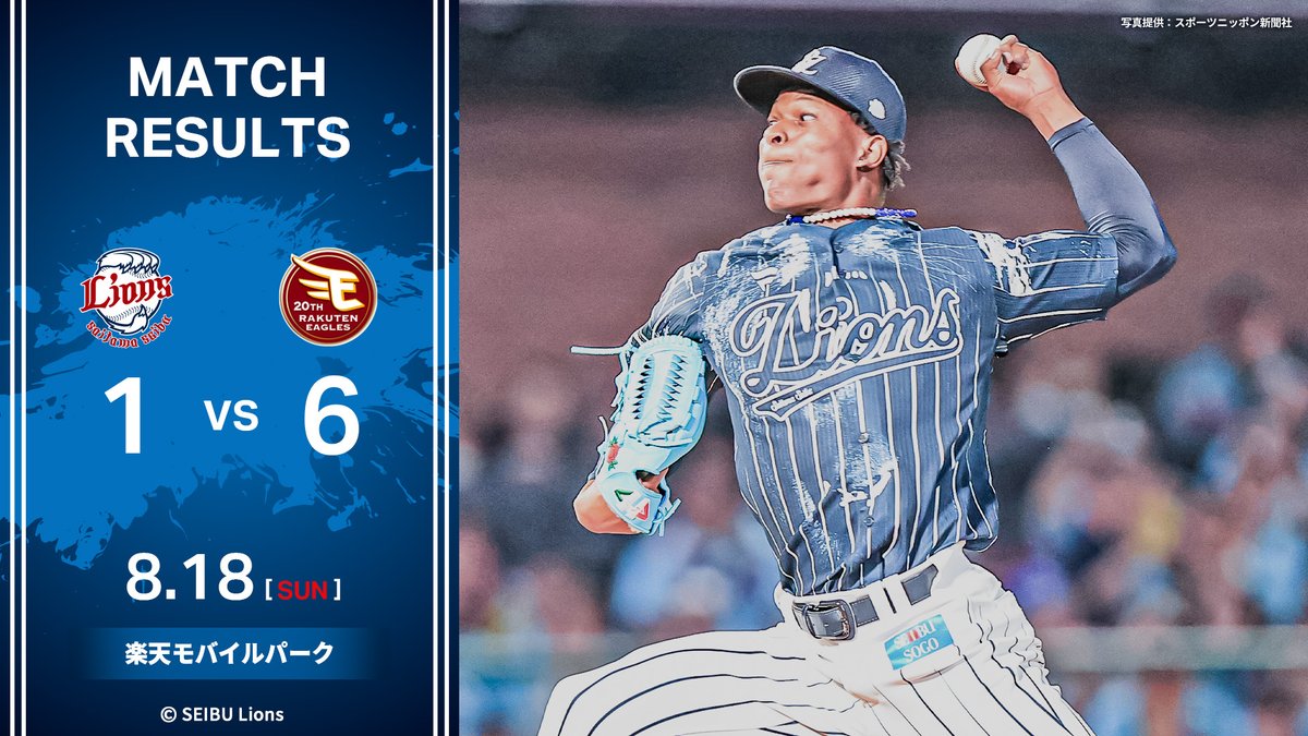 [8/18結果]L1-6E6点を追いかける4回に#山村崇嘉選手の内野ゴロの間に1点を返します。#ヤン投手が3者連続三振を奪うなど、2番手以降の中継ぎ陣が無失点に抑えます。9回に好機を作りますが、得点と..