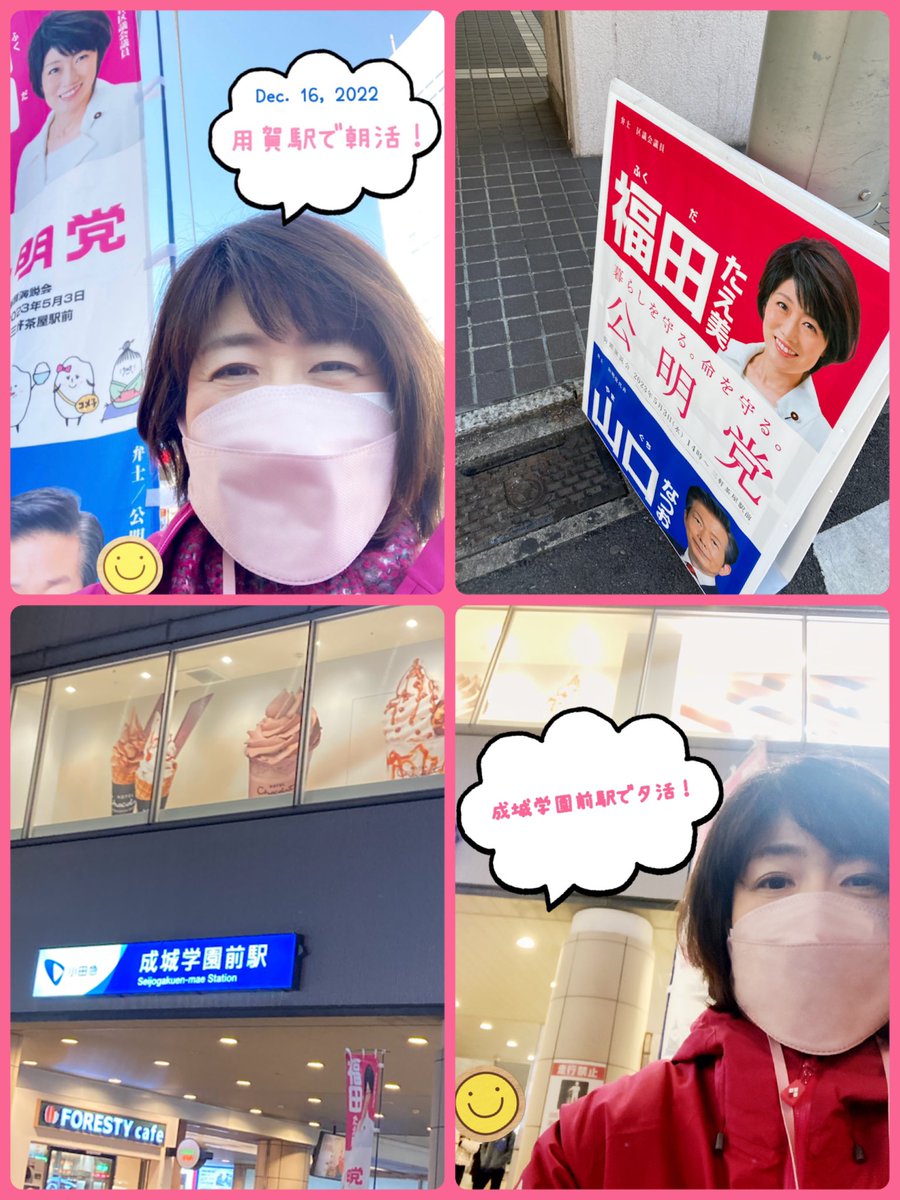 用賀駅での朝活後は、広報小委員会、議会運営委員会、特別委員会が臨時で開催されました。 夕方は、成城学園前駅で夕活。 嬉しい再会に笑顔^_^ #用賀 #成城学園前 #世田谷区 #福田たえ美