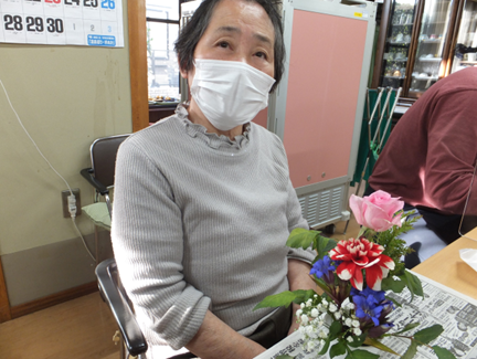 #デイホーム 太子堂のフラワーアレンジメント💐 今回はダリア・バラ・カスミ草・ヒバ等を用意しました😊 ダリアの花が目立っていましたが、最後にヒバを挿すと、どの花もお互いに協調し合う素敵な作品になりました😊 ※ダリアの花言葉は、「優雅」「気品」「栄華」等、色々な意味あるみたいですよ😃