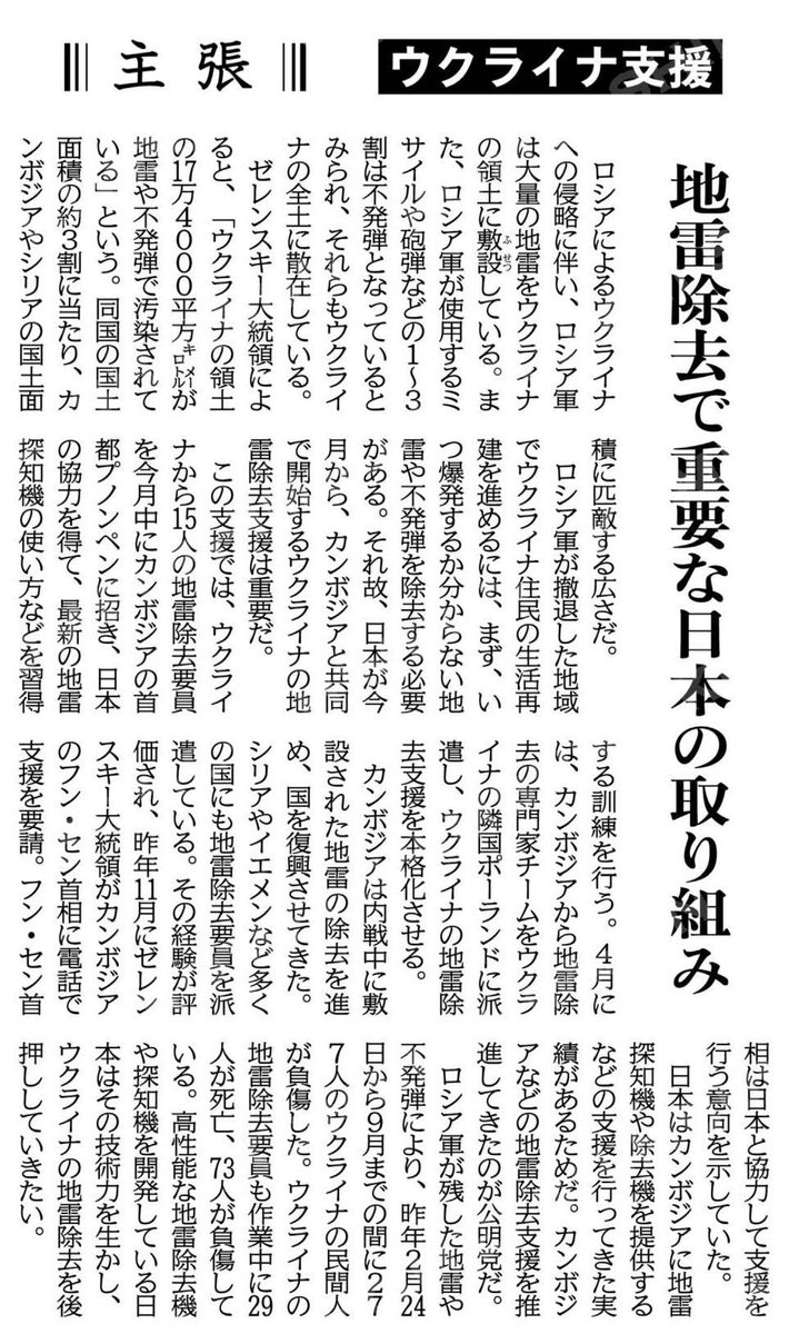 地雷除去はウクライナの復興支援には欠かせない。山口代表は日本の技術力でカンボジア等で地雷除去に尽力してきた。その活動は国際的にも評価されている。