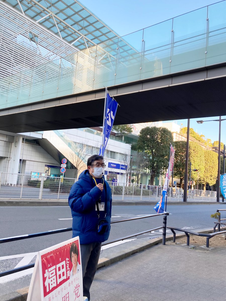 今朝は、二子玉川駅で朝活!(高久都議も一緒に朝活) 朝の忙しいお時間に、沢山の方にエールを送って頂きました。ありがとうございました😊 #福田たえ美 #二子玉川 #多摩堤通り #駐輪場 #堤防整備