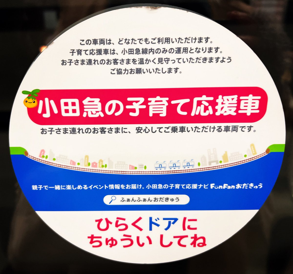 小田急線の3両目車両にある「子育て応援車ステッカー」を見つけました。