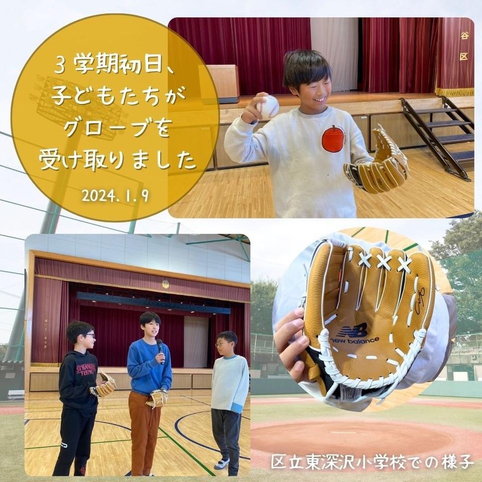 大谷選手から贈られたグローブが、区内の各小学校に届きお披露目されました。東深沢小学校では6年生の代表児童がキャッチボールを楽しみ、「このグローブでみんなが野球好きになるといいな。」と話してくれました。 #世田谷 #大谷選手グローブありがとう