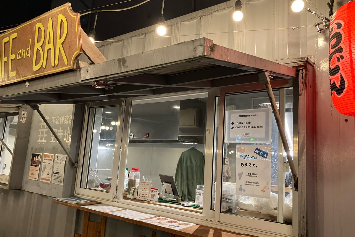 下北線路街 空き地に来ました、ホントにたき火してる!めっちゃ暖かいー。しかもなんかスクリーンに映し出されてるし。マシュマロも焼けますよー。持ち込みはできないので、ぜひ空き地カフェでご購入くださーい。本日21時まで、明日も開催します。飲み会でもやるかー、おでんの出汁割り飲みたいなー