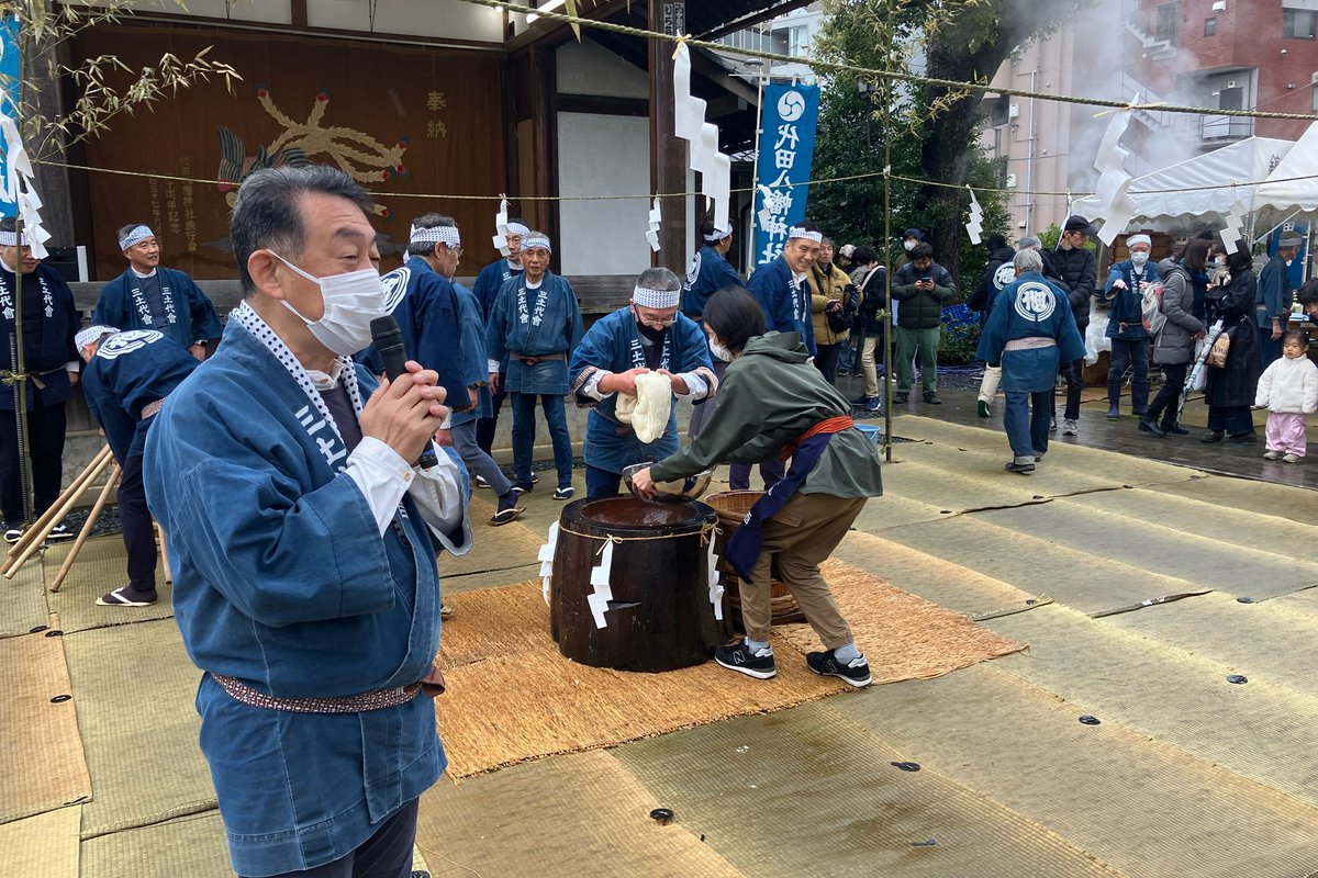 代田八幡神社に来ました、本日は「三土代會 もちつき」が開催されます。ついたお餅は300名に振舞われることもあり、たくさんの人が詰めかけています。実は長年しもブロをやっていながら、実際にこのイベントで見るのは今日が初だったりします