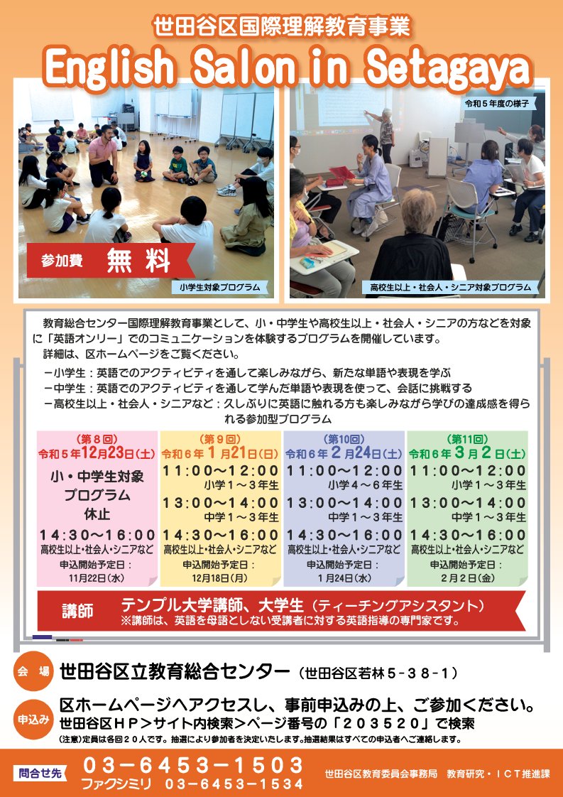 【無料の英語教室参加者募集!】 2月24日(土)に教育総合センター@若林で開催。乳幼児から大人まで参加可能!初心者や久しぶりに英語に触れたい方も大歓迎。(応募多数は抽選)。 中学生クラス余裕あり! 動画もご覧ください♪ #世田谷 #英語 #無料講座