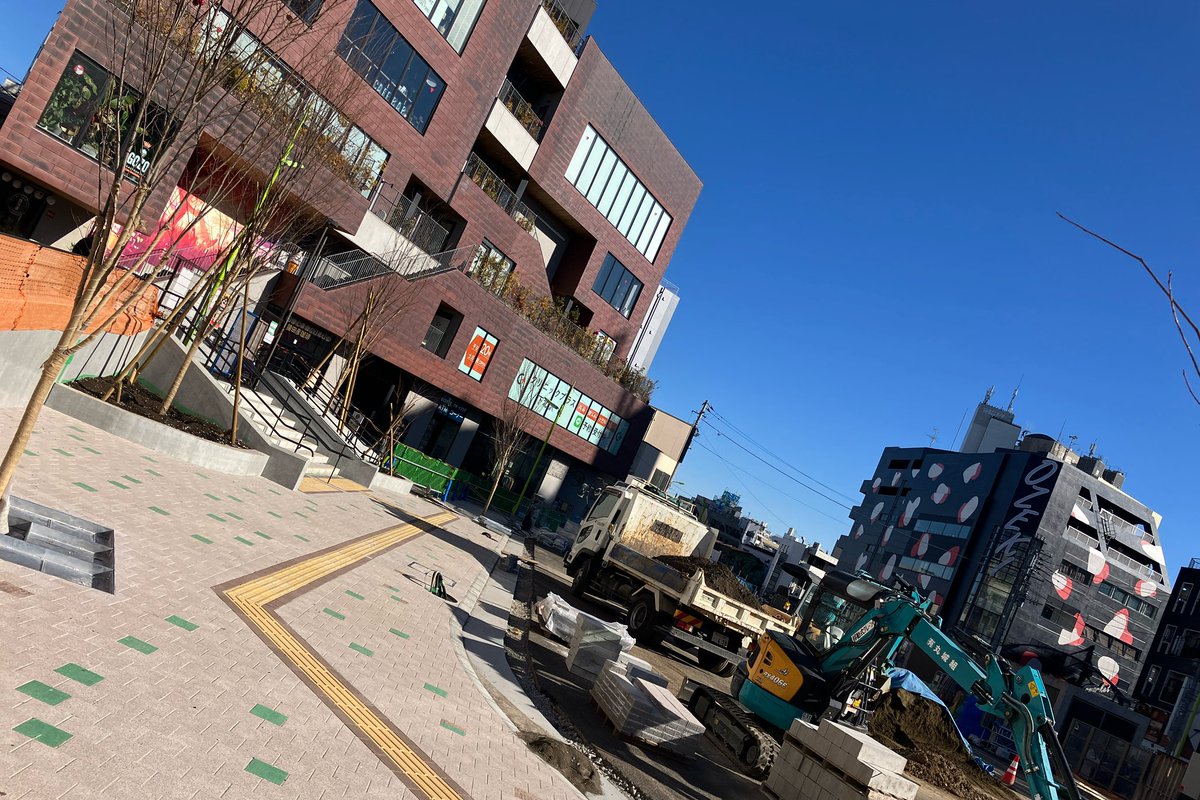 おはようございます!昨晩から明け方にかけての冷え込みがすごかったですが、すっきり晴れましたね。駅前広場のブロックもかなり整いました。まだ、工事は続きますが利用開始が楽しみですねー。