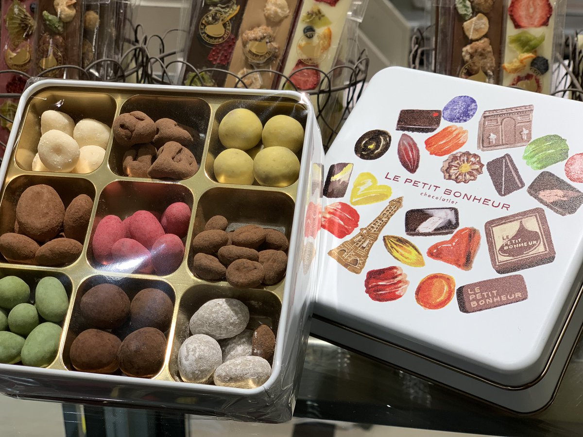 缶には、〈ル・プティ・ボヌール〉を象徴するボンボンショコラが描かれていますよ❤️