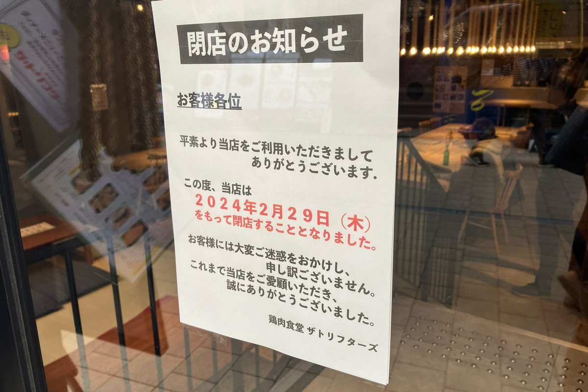 ショック、ザ・トリフターズが2月29日で閉店に、、、ついこのまえ、ランチレポしたばかりなのに、残念です。飲みに行こうっと!