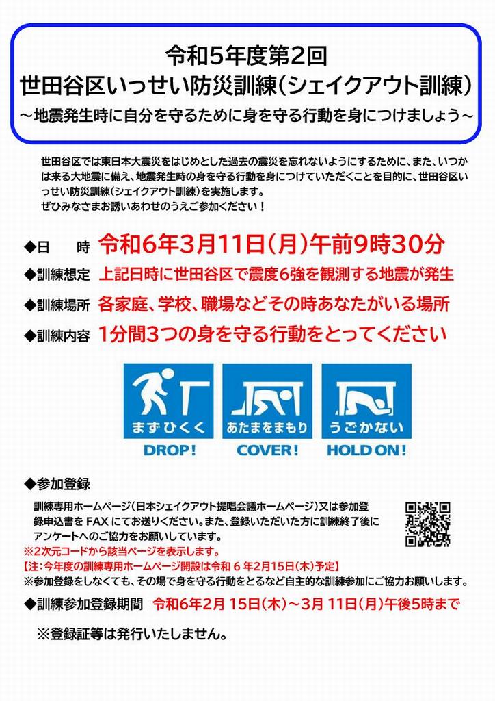 [世田谷区いっせい防災訓練(シェイクアウト訓練)について]