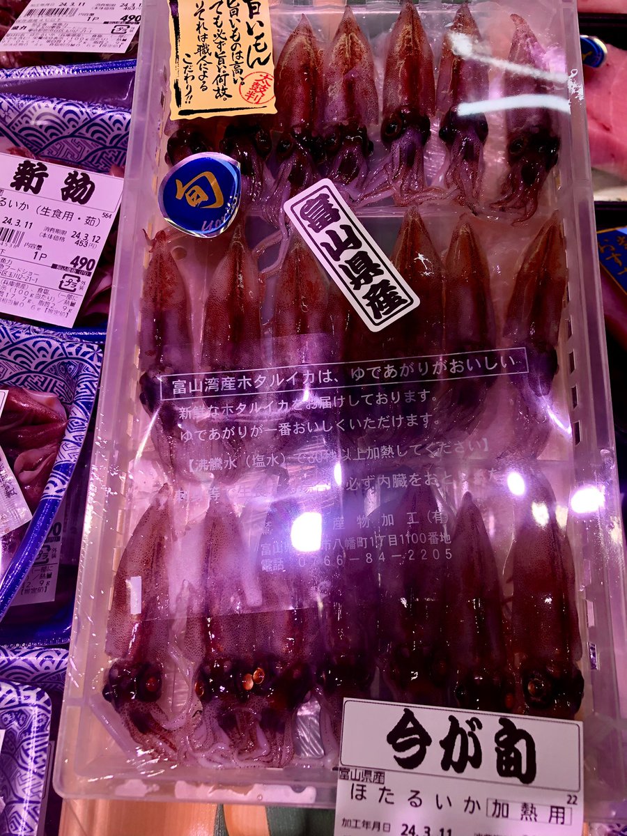 個人的に無類のホタルイカ🦑好きでして。この季節、見掛けると買わずにはいられないんですよね…。本日〈魚力〉には珍しい、生ホタルイカ(加熱用)が入荷してましたよ〜。 エビイロ #二子玉川 #東急フードショー