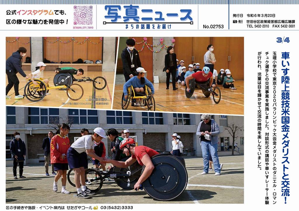 【写真ニュース3月20日号発行】1面では、玉堤小で行われた車いす陸上競技米国金メダリストとの交流事業をご紹介。2面では、乳幼児親子向けの絵本読み聞かせ会の様子や、生活工房で開催中の展覧会などについて掲載しています。ぜひご覧ください! #世田谷 #写真ニュース www.city.setagaya.lg.jp/moku..