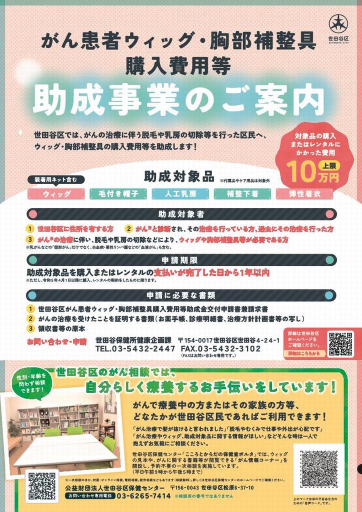 【がん患者へのアピアランス支援】がん治療に伴う脱毛や乳房の切除等をされた区民の方へ、ウィッグ・胸部補整具等の費用を助成します。申請には、申請書のほか、がんの治療を受けたことを証明する書類や領収書等の原本が必要になります。詳細は区HPをご確認ください。 #世田谷 www.city.setagaya.lg.jp/moku..
