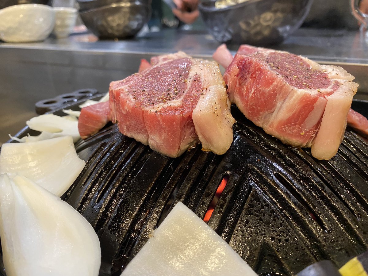 祖師ヶ谷大蔵のギンタさんこぼれ落ちそうなほど分厚いラムチョップ。祖師ヶ谷大蔵だけに、ウルトラセブンの頭かと思った。。。しゅわっち!0012