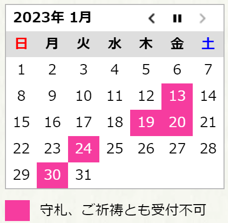 令和5年1月の社務所休務日です。申し訳ありませんが、社務所休務日は、御祈祷、お守り、御朱印などの受付は出来ません。⛩️参拝は可能です(通常:開門7時~閉門17時)。#松陰神社 #世田谷001