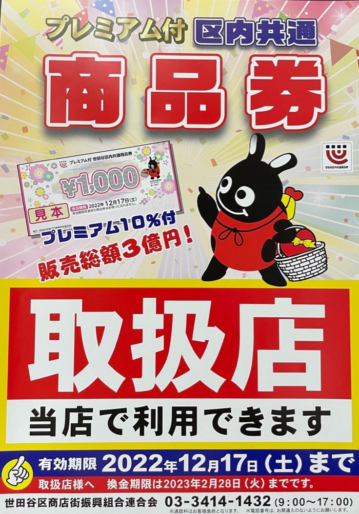 プレミアム付き商品券の有効期限が間近です。今週土曜の12月17日までです。まだお持ちの方はお早めにご利用ください♫#世田谷#杉並#京王線#上北沢#東京000
