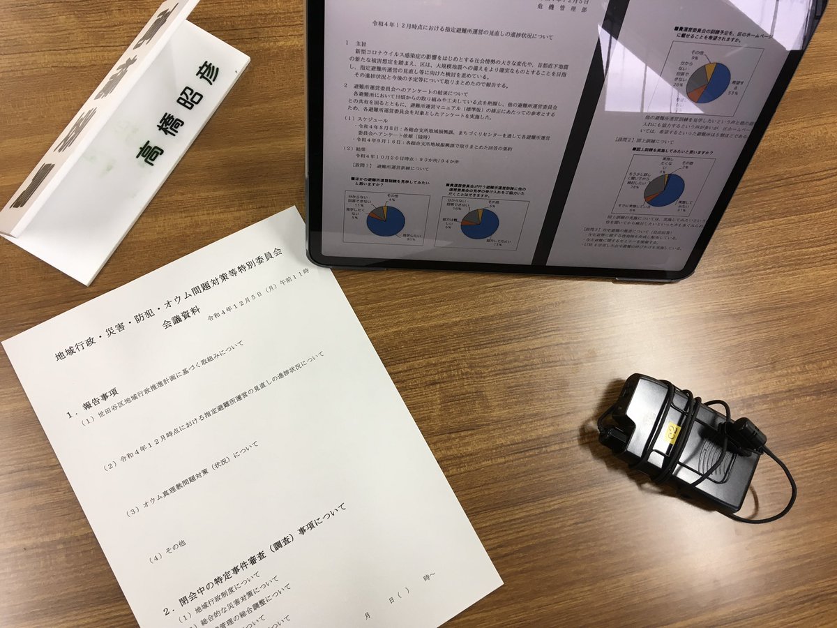 【世田谷区議会】#高橋昭彦今日は、世田谷区議会特別委員会の日。地域行政、オウム問題、災害防犯等特別委員会です。指定避難所マニュアルの改訂についてや地域行政計画についてなど、様々議論の委員会です。#世田..