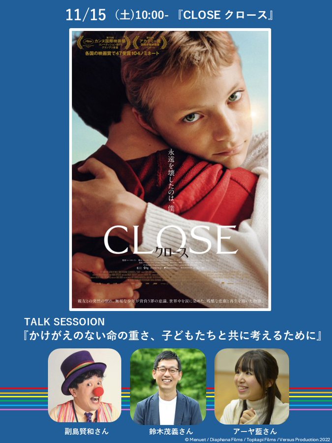 【渋谷ジェンダー映画祭2日目】11/15(土)の午前中は第75回カンヌ国際映画祭でグランプリを受賞した話題作、「CLOSE クロース」を上映。トークセッションは「かけがえのない命の重さ 子どもたちと共に考えるために」をテーマに副島賢和さんと鈴木茂義さんのお話を伺います。 https://shibuyagender.tokyo/02/