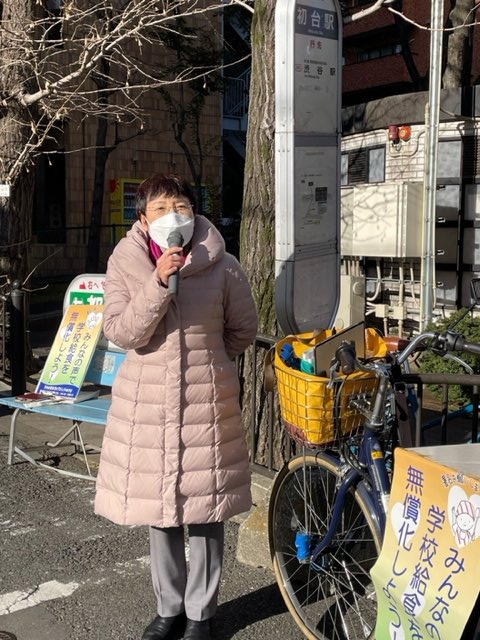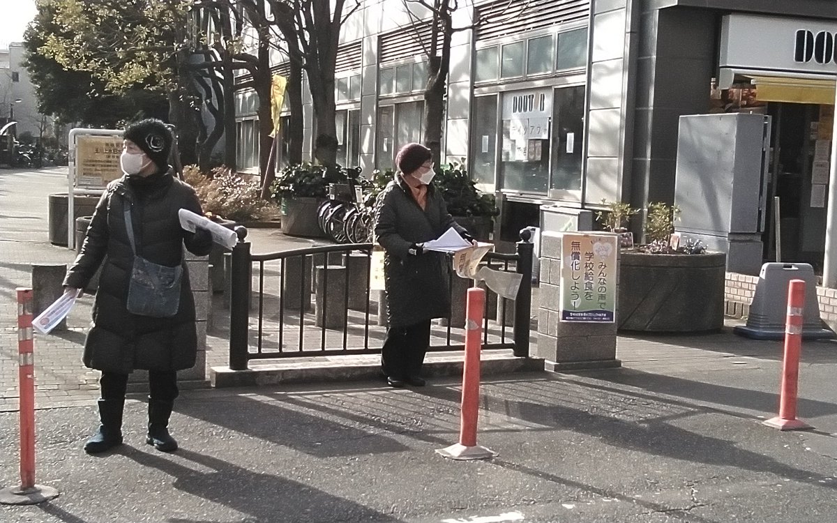 初台駅前で学校給食の無償化プロジェクト「みんなの声で学校給食を無償化しよう!」が始めた署名を通行人によびかけました。部活動かえりの高校生や、20代の男性がポスターを見て署名してくれたのをみて連れの方たちも次々と協力いただき、ありがとうございました。