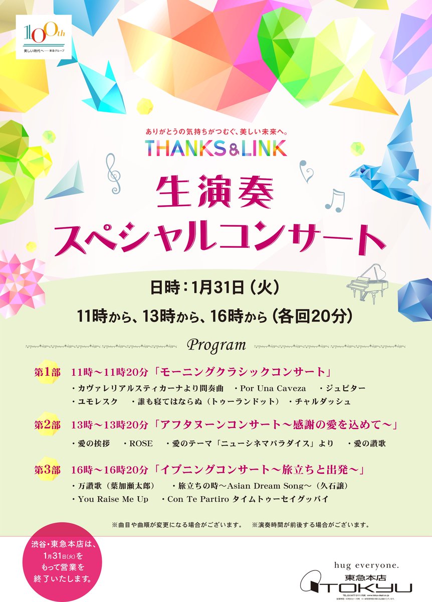 渋谷・東急本店 最終営業日に1階で行ったコンサートのプログラムはこちらです🎹🎻