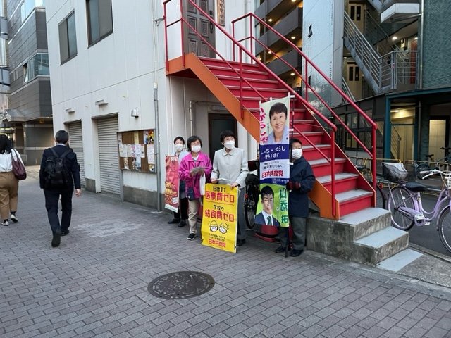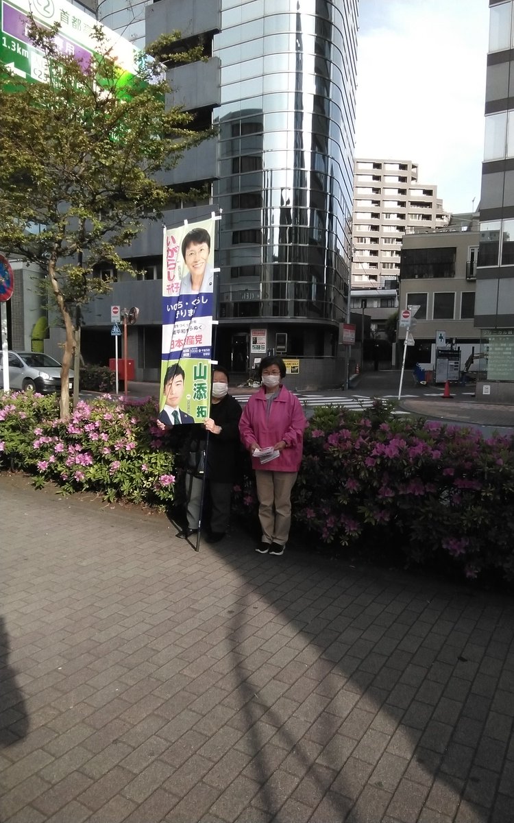 昨日と今朝の宣伝は、清水橋交差点近くで。先週の入学式に緊張していた本町学園の1年生は、友達見つけてすっかり笑顔で挨拶。新入生が127人、上級生があと少しで5クラスだったんだよ、と教えてくれました。子どもたちの学校給食無償化の実現に全力あげます。#いがらし千代子