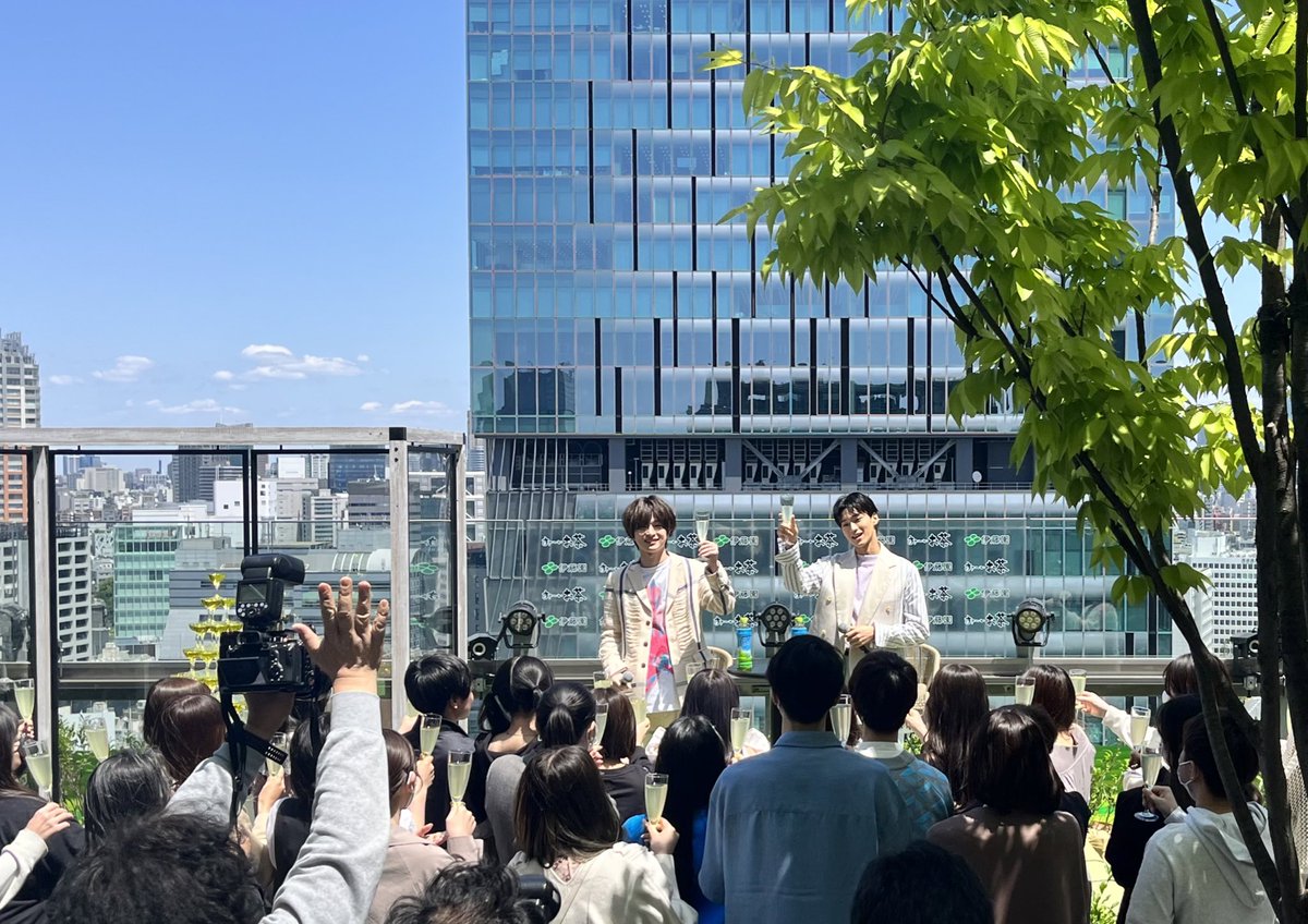 本日は伊藤園さんより新商品の発表会がありました‼️当協会 事務局長の小池も登壇🎤ゲストの #曽田陵介 さん、#松本怜生 さんのカンパイの合図で新茶とスイーツを楽しみました🍵✨