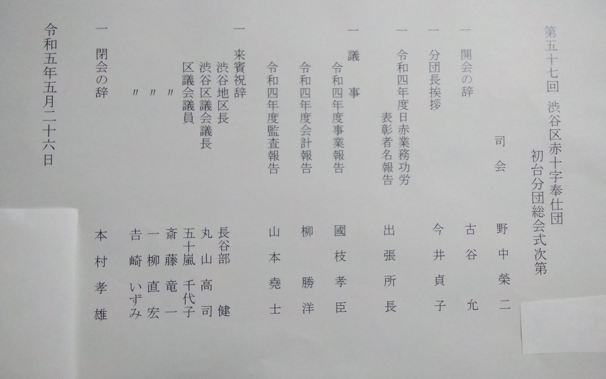 今日は、午前中シニアクラブ連合会、午後は赤十字奉仕団初台分団総会、夜は本町町会連合会と本町自主防災連合会総会に出席させていただきました。本町自主防災会の途中に地震に見舞われヒヤリとする場面もありましたが、6/10の9時から本町学園で防災訓練がおこなわれます。誰でも参加できます。