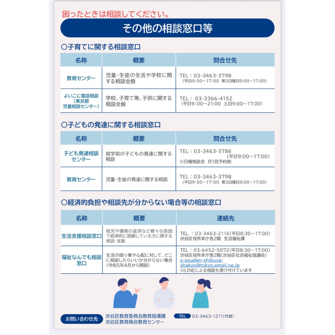教育委員会から区立小中に通う保護者へ支援情報まとめの発信があったので共有