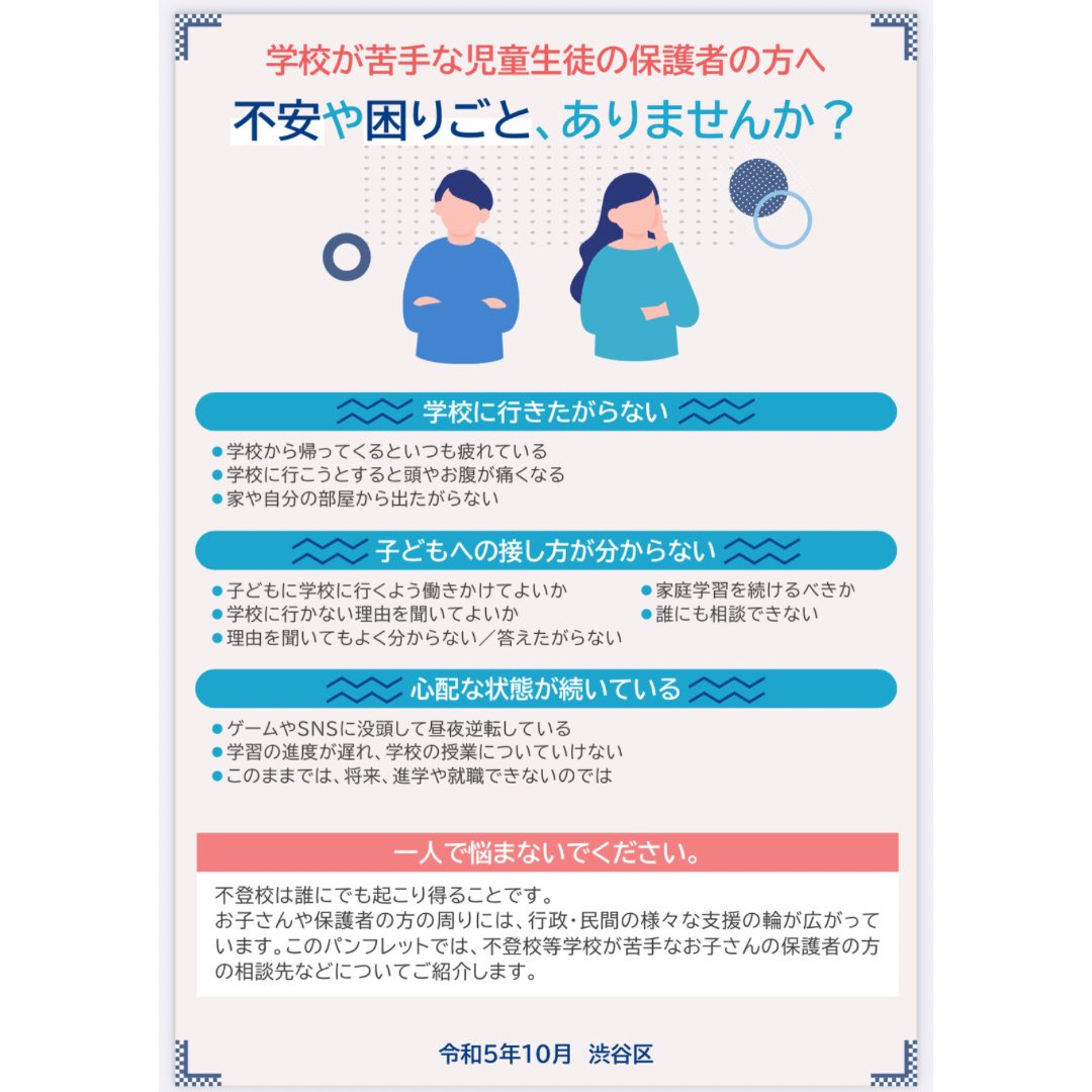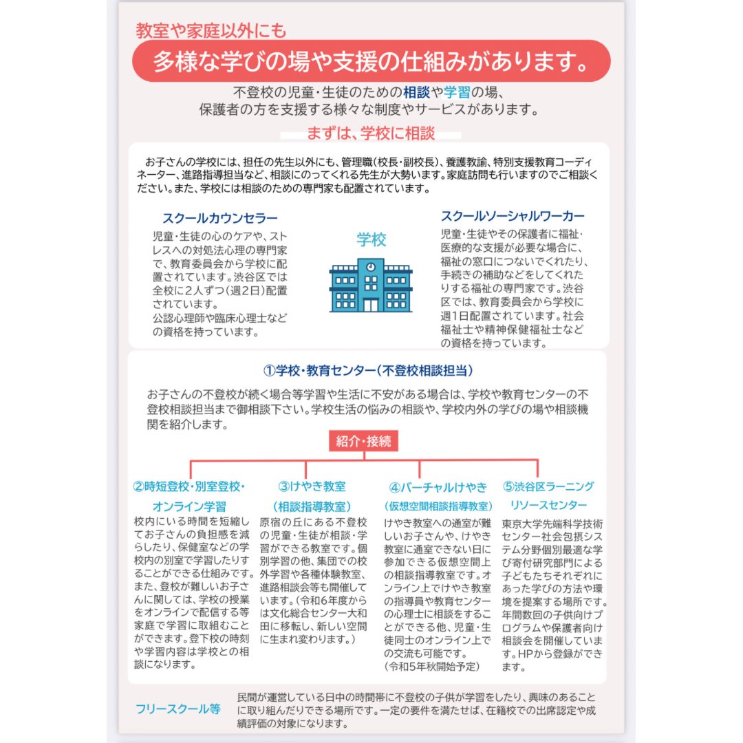 渋谷区でも不登校支援の提案を様々行ない、少しずつ充実してきました